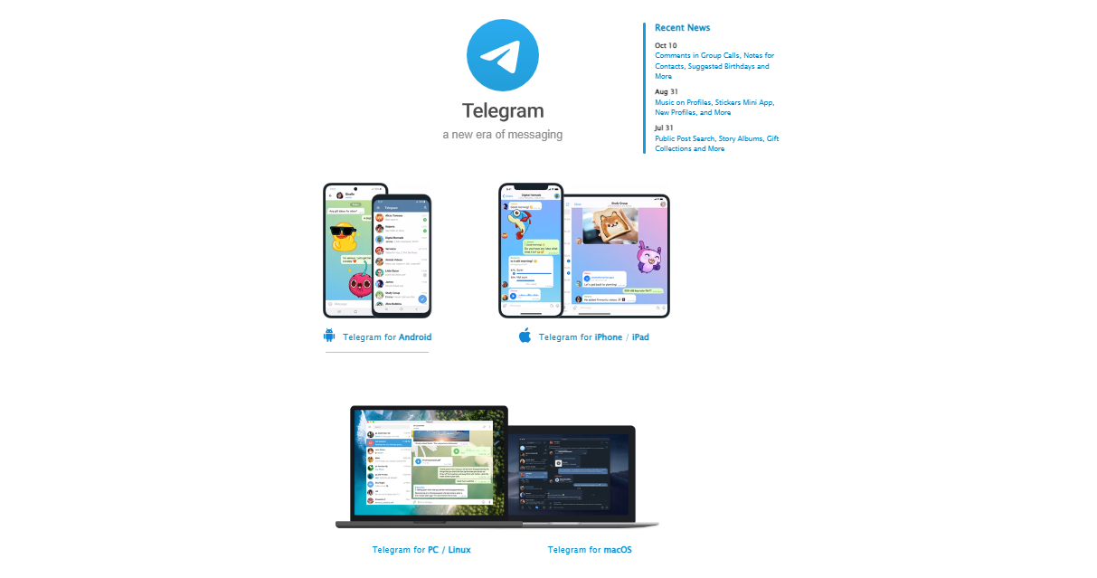 Telegram官网是Telegram.org,至于有一个Telegram中文官网,关于这个网站本人不做评论,并且不知情。打开Telegram官网之后,可以看到安卓、iPhone/iPad、PC/Mac/Linux的客户端下载地址。